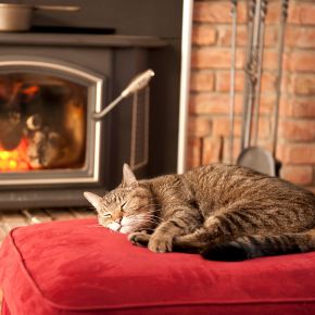 Keep your house at a comfortable temperature and use a safe method of heating if leaving your cat unattended. Open fires and gas fires can be very dangerous for pets home alone.
